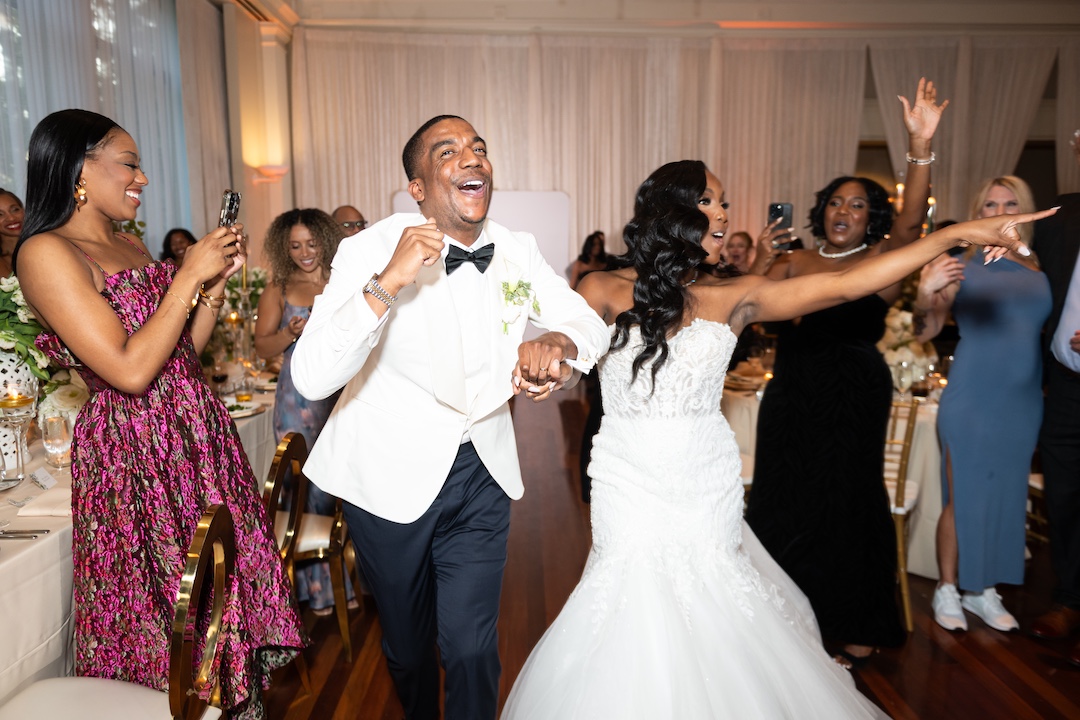 The ceremony at the Swan House Gardens felt like stepping into a fairytale. Surrounded by historic architecture and lush greenery, Ryan’s expression when he first saw Meagan walking down the aisle was unforgettable. Their vows were heartfelt, and the garden setting created a truly magical atmosphere. Guests then transitioned to the Grand Overlook Ballroom for a reception that combined sophistication with high-energy celebration. With its vaulted ceilings and expansive windows, the ballroom was the perfect canvas for a night of love, laughter, and dancing.