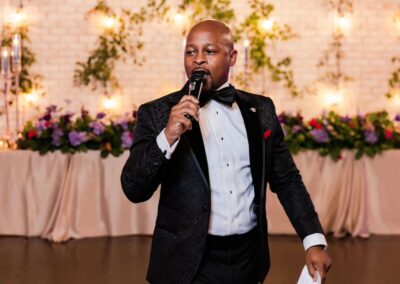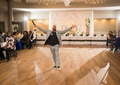 With our vast and diverse selection of music, we’ll work with you to create a playlist that sets the perfect tone for your special day. From wedding ceremonies to receptions, we’ll be there every step of the way, providing top-notch entertainment for your wedding and reception. Additionally, our skilled wedding emcee will ensure seamless transitions between moments, keeping the energy high and the atmosphere lively. You can trust our experienced wedding DJs to play the best wedding songs, ensuring your day is filled with joy, laughter, and love for you and all of your guests of all ages.